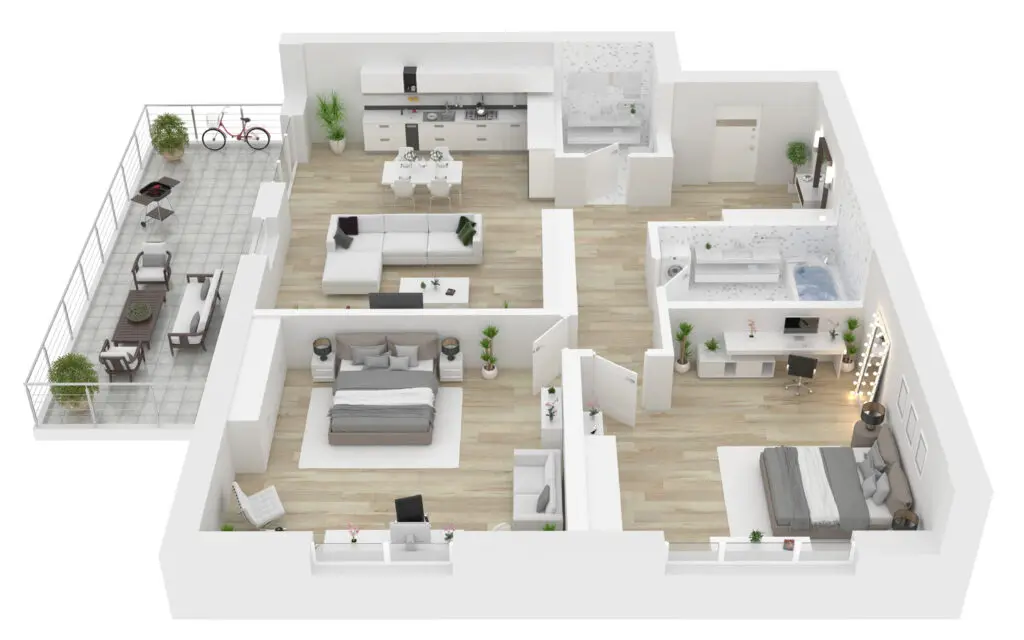 لكل غرفة وظيفة محددة، وتوزيع الغرف بشكل منطقي يسهل الحياة اليومية. تصميم الشقق من الداخل الجيد يأخذ بعين الاعتبار العلاقة بين المساحات المختلفة: